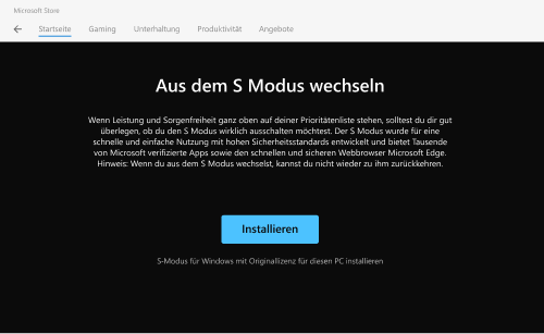 Aus dem S Modus wechseln, um die Installation von Chrome abzuschließen.