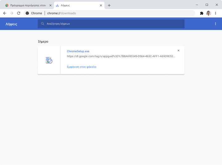 Ανοίξτε το αρχείο ChromeSetup.exe από τη λίστα με τις λήψεις στην επάνω δεξιά γωνία αυτού του παραθύρου.