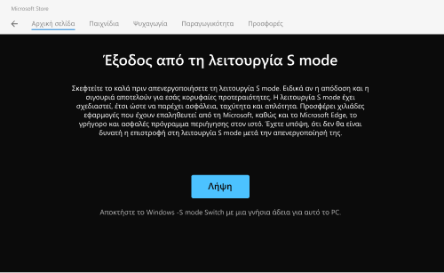 Για να ολοκληρώσετε την εγκατάσταση του Chrome, είναι απαραίτητη η έξοδος από τη λειτουργία S mode.