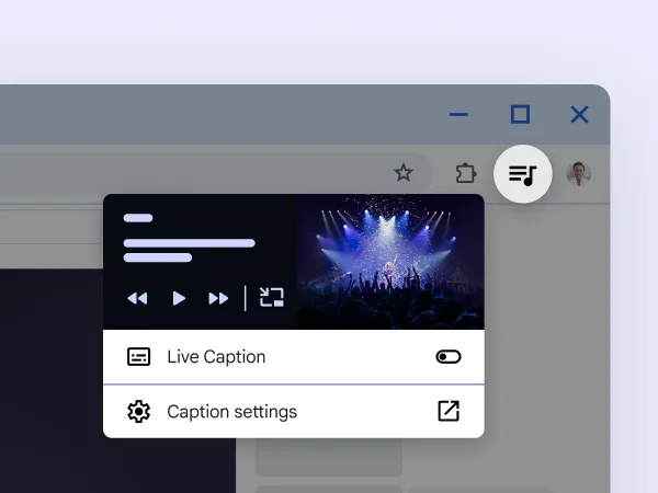 Chrome supports screen readers and magnifiers and offers full-page zoom, high-contrast color, AI image descriptions, live captioning, keyboard browsing, and more — making it easier than ever to surf the web in a way that works for you.
