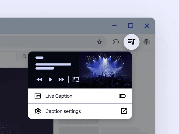 Chrome supports screen readers and magnifiers and offers full-page zoom, high-contrast color, AI image descriptions, live captioning, keyboard browsing, and more — making it easier than ever to surf the web in a way that works for you.