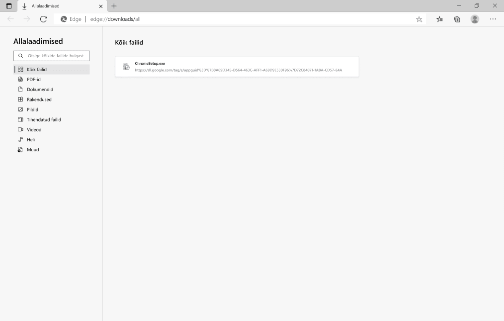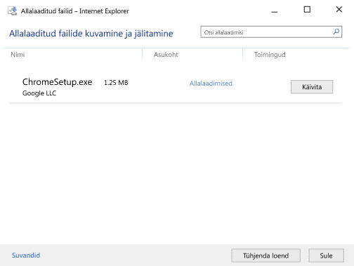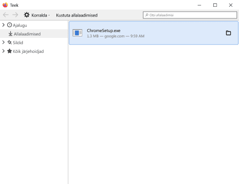 Avage akna paremas ülanurgas allalaadimiste loendist fail ChromeSetup.exe.
