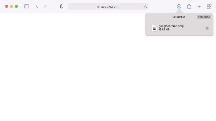 Avaa googlechrome.dmg-tiedosto ikkunan oikeassa yläkulmassa olevasta latauslistasta.