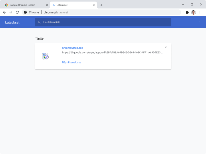 Lataus alkaa automaattisesti. Jos se ei ala, lataa Chrome manuaalisesti.