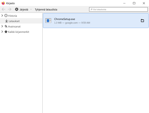 Avaa ChromeSetup.exe-tiedosto ikkunan oikeassa yläkulmassa olevasta latauslistasta.