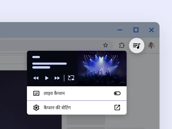 Chrome पर, स्क्रीन रीडर और स्क्रीन पर मौजूद कॉन्टेंट को बड़ा करके दिखाने की सुविधा उपलब्ध है. इनके अलावा, कुछ और सुविधाएं भी उपलब्ध हैं. जैसे, पूरे पेज को ज़ूम करना, ज़्यादा कंट्रास्ट वाला रंग, एआई से तैयार होने वाली इमेज की जानकारी, लाइव कैप्शन, कीबोर्ड से ब्राउज़ करना. इनके ज़रिए, अब वेब पर ज़्यादा आसानी से अपना पसंदीदा कॉन्टेंट खोजा जा सकता है.