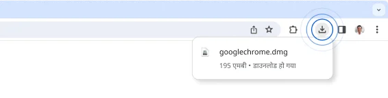 इस विंडो पर सबसे ऊपर दाएं कोने में, डाउनलोड की गई फ़ाइलों की सूची में से googlechrome.dmg फ़ाइल खोलें.