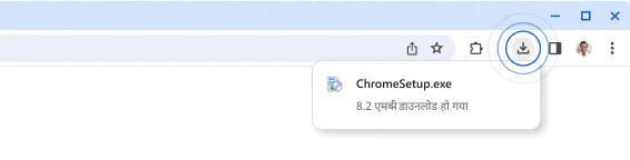 इस विंडो पर सबसे ऊपर दाएं कोने में मौजूद, डाउनलोड आइकॉन पर क्लिक करें. इसके बाद, डाउनलोड की गई फ़ाइलों की सूची में से ChromeSetup.exe फ़ाइल खोलें.