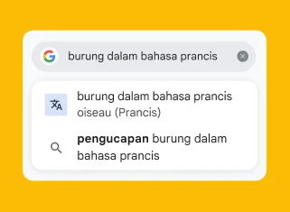 Dapatkan hasil instan saat Anda meminta penerjemahan kata atau frasa singkat dengan mengetik “[Kata] dalam bahasa [Bahasa]”.