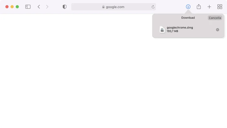 Apri il file googlechrome.dmg dall'elenco di download nell'angolo in alto a destra di questa finestra.
