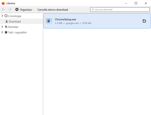 Apri il file ChromeSetup.exe dall'elenco dei download nell'angolo in alto a destra di questa finestra.
