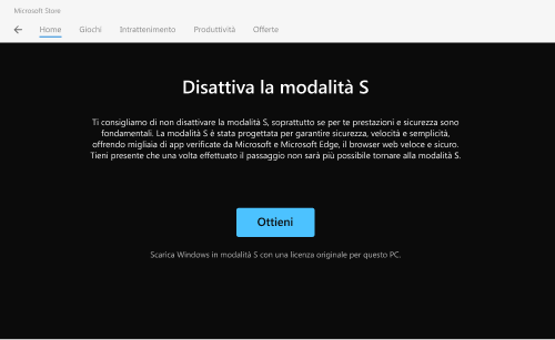 Per terminare l'installazione di Chrome, disattiva la modalità S