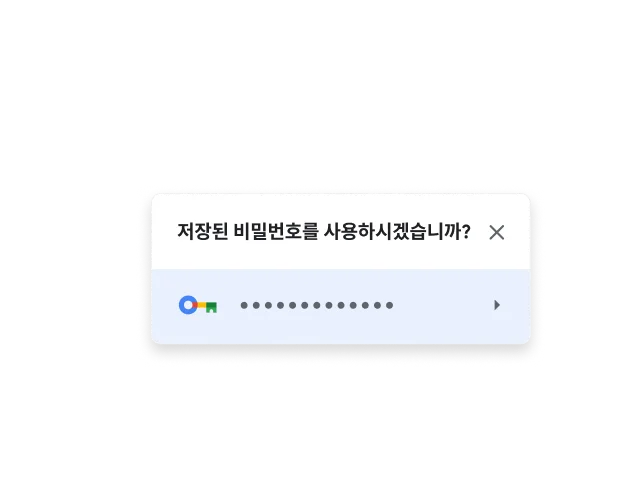 Chrome에는 Google 비밀번호 관리자가 기본 제공되어 온라인에서 비밀번호를 손쉽게 저장, 관리, 보호할 수 있습니다. 또한 사용하는 모든 계정에 대해 더 안전한 비밀번호를 만들 수 있습니다.