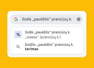 Įjunkite mikrofoną ir ieškokite balsu. Paprašykite parodyti nuotraukas, gaukite atsakymų į ramybės neduodančius klausimus, pasakykite žodžius ar frazes, kad jie būtų išversti, ir gaukite žodžių apibrėžčių.