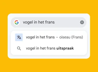 Gebruik de microfoon om met je stem te zoeken. Vraag om foto's te zien, krijg antwoorden op dringende vragen, zeg woorden of zinnen die je wilt laten vertalen en krijg de definities van bepaalde woorden.