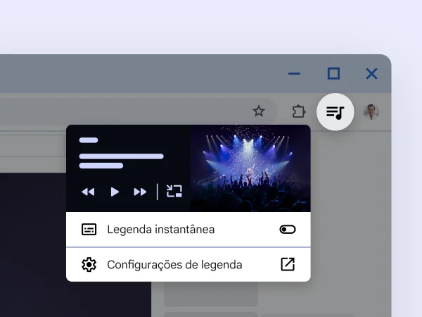 É possível usar leitores de tela e lupas no Chrome, além dos recursos de zoom em tela cheia, cores em alto contraste, descrições de imagens geradas por IA, legendas instantâneas, navegação via teclado e muito mais. Ficou ainda mais fácil navegar na Web do jeito que funciona para você.