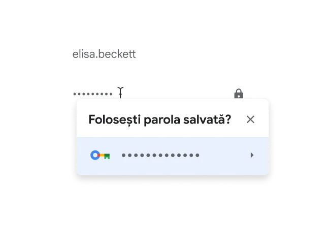 Chrome are Managerul de parole Google încorporat, ca să-ți poată salva, gestiona și proteja ușor parolele online. În plus, te ajută să creezi parole mai puternice pentru fiecare cont folosit.