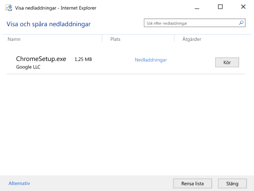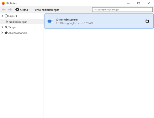 Öppna filen ChromeSetup.exe från listan över nedladdade filer uppe till höger i det här fönstret.