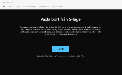 Du måste växla bort från S-läget för att avsluta installationen av Chrome