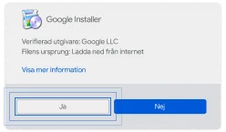 Om du ombeds att göra det klickar du på ”Ja” i systemdialogrutorna.