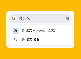 打開麥克風,就能使用語音搜尋。你可以搜尋想看的圖片、詢問最想瞭解的問題、說出要翻譯的字詞或詞組,還有查詢詞彙定義。